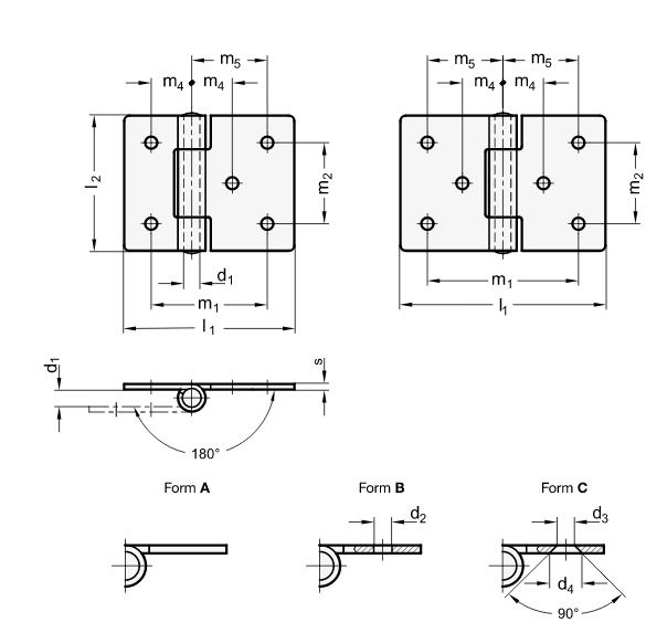 Blechscharniere GN 136 sind in vielen unterschiedlichen Ausführungen erhältlich und eignen sich für leichte bis mittelschwere Anwendungen.
