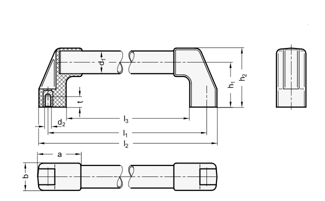 GN 667.2 Aluminium - Bügelgriffe mit Edelstahlrohr, Montage von der Rückseite