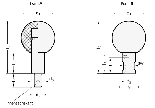 GN 319.2 Drehbare Kugelknöpfe aus Kunststoff