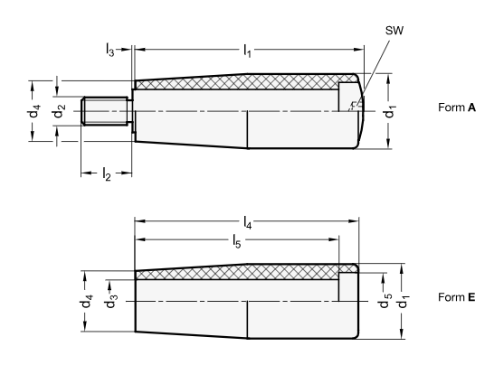 GN 598.2 Drehbare Zylindergriffe mit durchgehendem Edelstahl-Gewindebolzen