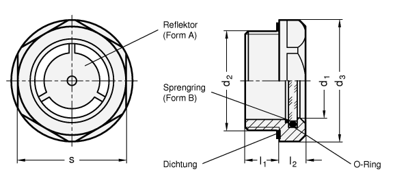 Der Außen-Ø der Ölschaugläser mit dem zurückgesetzten Sechskant ist auf Einschraublöcher für Rohrverschraubungen DIN 3852 abgestimmt.