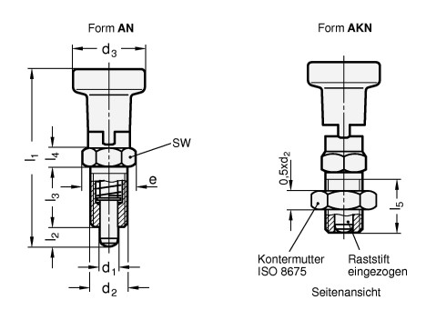 Preview: GN 617.1 Edelstahl-Rastbolzen mit Rastsperre