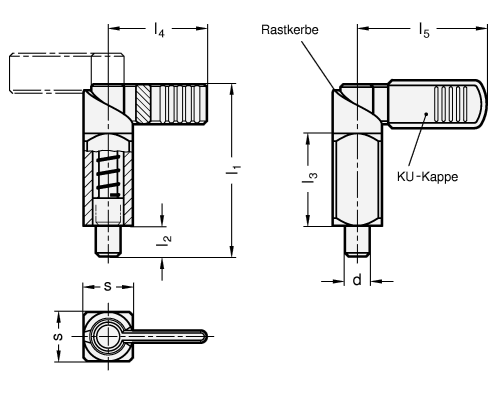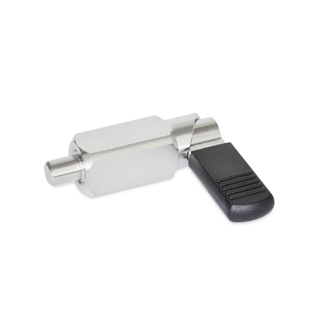 Edelstahl-Rastriegel GN 612.3 werden eingesetzt, wenn der Raststift zeitweise nicht vorstehen soll. Durch Drehen des Riegels um 180° wird der Raststift eingezogen. Die Rastkerbe ermöglicht das Halten in beiden Positionen.