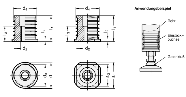 GN 992 Aluminium - Einsteckbuchsen
