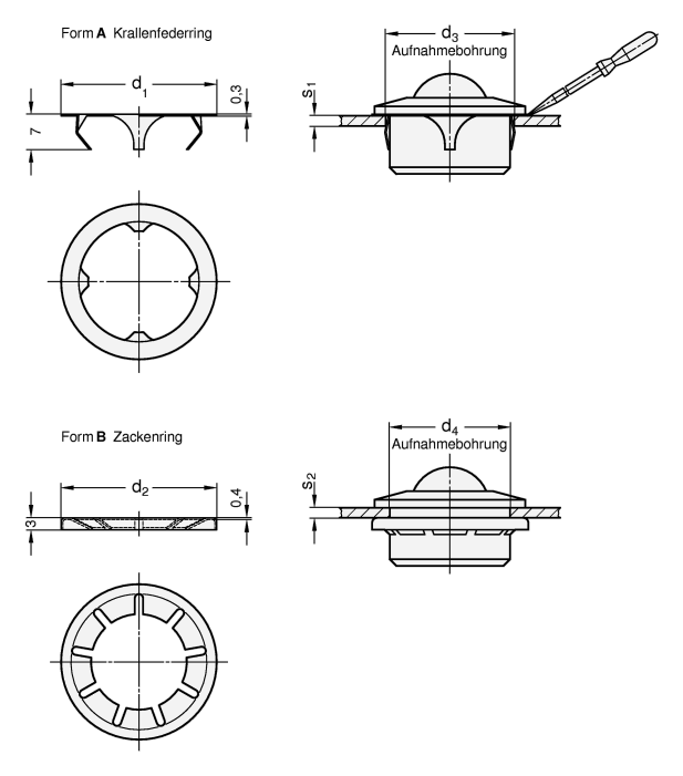 GN 509.3 Federringe, Befestigungselemente für Kugelrollen GN 509 / GN 509.1