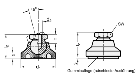 Mobile Preview: GN 343.3 Gelenkfüße, Fuß Kunststoff / Gewindebuchse Stahl