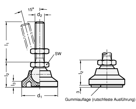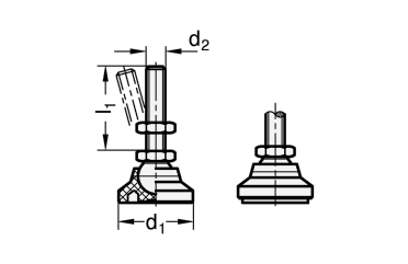 Gelenkfüße GN 343.8 erzielen ihre hohe statische Belastbarkeit durch die Verwendung eines hochwertigen Kunststoffes und einer Formgebung, welche die Last auf einen großen Bereich verteilt.
