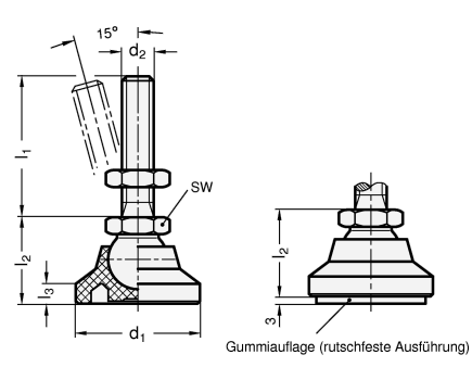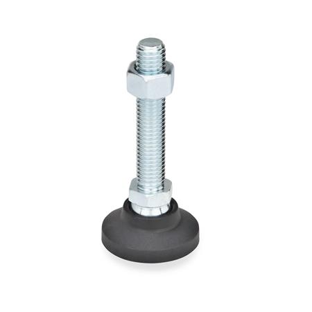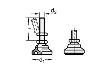 Gelenkfüße GN 343.4 erzielen ihre hohe statische Belastbarkeit durch die Verwendung eines hochwertigen Kunststoffes und einer Formgebung, welche die Last auf einen großen Bereich verteilt.