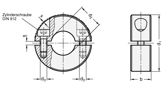 Geteilte Stellringe GN 707.2 werden eingesetzt, wenn eine axiale Montage des Ringes auf der Welle nicht möglich ist.