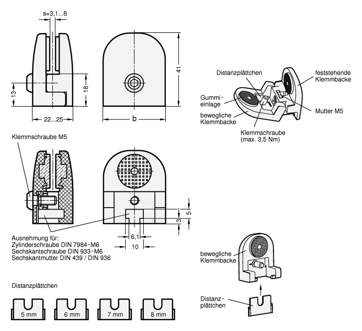 Preview: GN 649 Halter für Flächenelemente, Kunststoff