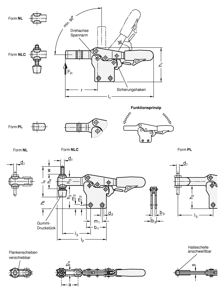 GN 820.4 Horizontal-Spanner mit Verriegelung und senkrechtem Fuß