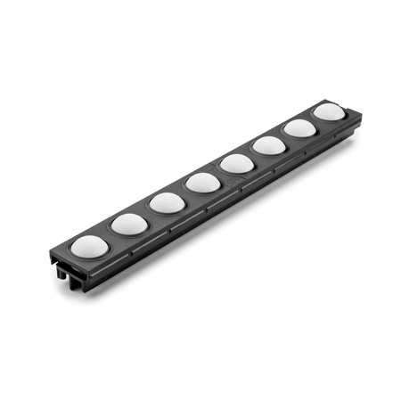 Die Kugelleiste GN 646.2, eingesetzt in Trägerprofile GN 646.3, bilden Kugelschienen für „allseitige“ Bewegungen der Fördergüter.
