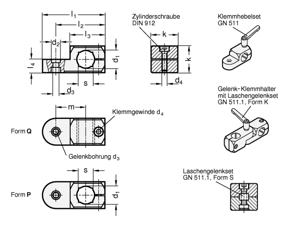 GN 511.1 mit Schraube (Form S) und verstellbarem Klemmhebel (Form K) zur Verfügung.