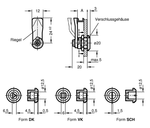 Sie verriegeln durch eine auf 90° begrenzte Drehung der Betätigung, die den Riegel hinter der Zarge zu liegen bringt. Die Anlaufschrägen am Riegel erleichtern das Schließen der Tür.