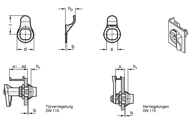 Öffnungsgriffe GN 120.1 sind für folgende Verschlüsse und Verriegelungen geeignet: