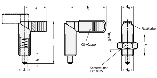 Rastriegel GN 612 werden eingesetzt, wenn der Raststift zeitweise nicht vorstehen soll. Durch Drehen des Riegels um 180° wird der Raststift eingezogen. Die Rastkerbe ermöglicht ein sicheres Positionieren.