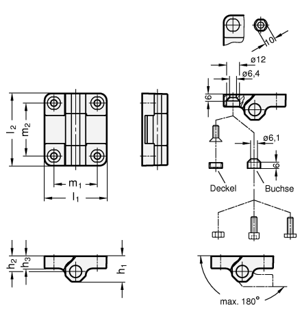 Mobile Preview: GN 239.7 Scharnier ohne Schalter aus Kunststoff