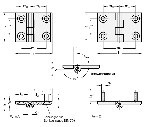 GN 237 Scharnierere mit horizonal verlängerten Scharnierflügeln