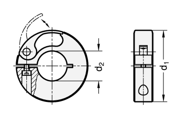 Bei Schnellspann-Klemmringen GN 704 wird der Kraftschluss mit der Welle über einen Exzenterhebel hergestellt. Dadurch lassen sich die