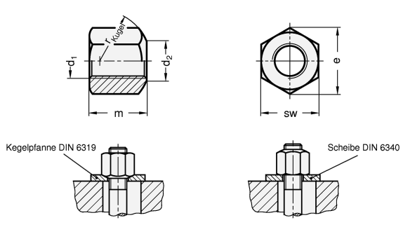 DIN 6330 Edelstahl - Sechskantmuttern mit kugeliger Auflagefläche