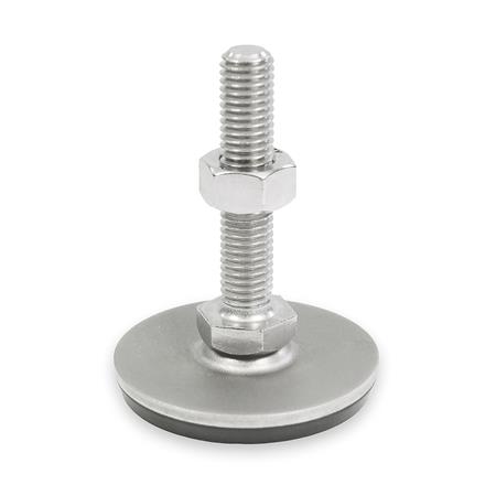 Stellfüße, Edelstahl-Blech, mit und ohne Gummiauflage >> Fußdurchmesser d1 = 80 > Gewinde d2 = M 24 > Länge l3 (W) = 159