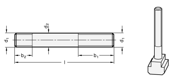 Stiftschrauben DIN 6379 werden hauptsächlich in Verbindung mit Muttern für T-Nuten DIN 508 verwendet.