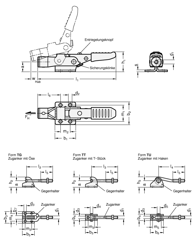 Die Verschluss-Spanner GN 853 sind mit einer Verriegelungsmechanik versehen, die ein unbedachtes oder durch Vibrationen ausgelöstes Öffnen des Spanners ausschließt.