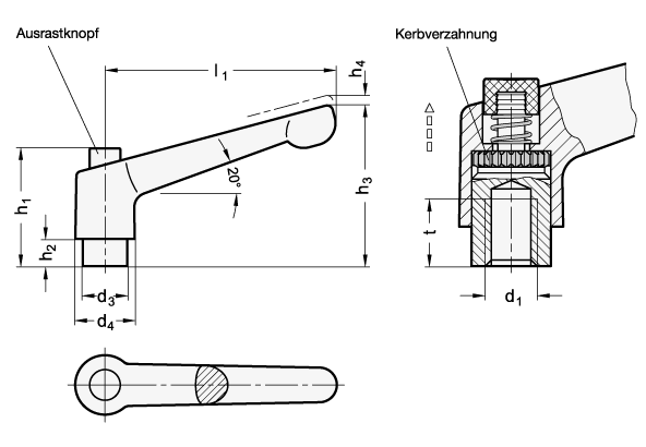 Preview: GN 303.1 Verstellbare Klemmhebel, Edelstahl-Gewindeschraube