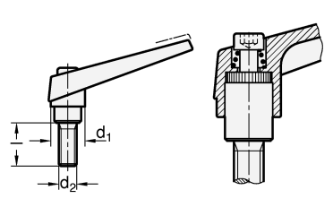 Verstellbare Klemmhebel GN 101.1 sind vorzugsweise dann einzusetzen, wenn der Spannbereich begrenzt oder eine bestimmte Spannstellung erwünscht ist. Der Gewindeeinsatz ist durch eine Kerbverzahnung mit dem Griff lösbar verbunden.