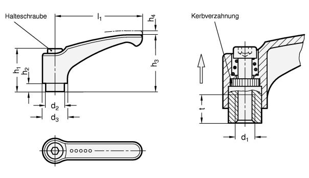 Preview: GN 602 Verstellbare Klemmhebel, Zink-Druckguss