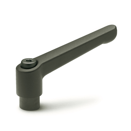 Verstellbare Klemmhebel GN 300 sind vorzugsweise dann einzusetzen, wenn der Spannbereich begrenzt der eine bestimmte Spannstellung erwünscht ist. Der Gewindeeinsatz ist durch eine Kerbverzahnung mit dem Griff lösbar verbunden.