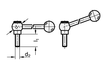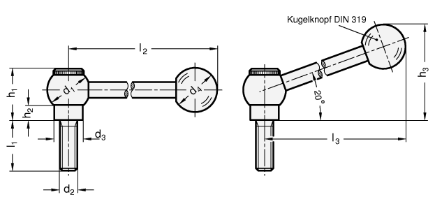 Wie alle verstellbaren Hebel sind sie dann einzusetzen, wenn der Spannbereich begrenzt oder eine bestimmte Spannstellung erwünscht ist. In der Kugelbohrung befindet sich der Gewindeeinsatz, der durch eine Kerbverzahnung mit dem Griff lösbar verbunden ist.