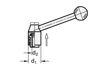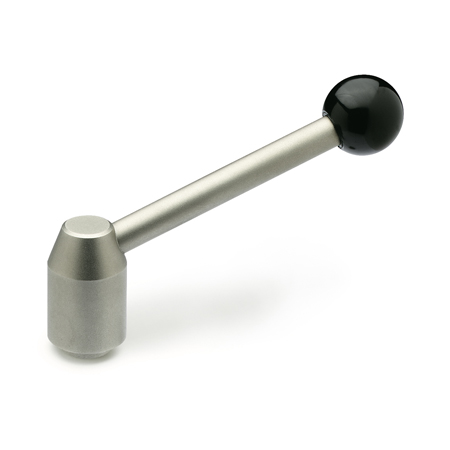 Verstellbare Edelstahl-Spannhebel GN 212.5 sind dann einzusetzen, wenn der Spannbereich begrenzt oder eine bestimmte Spannstellung erwünscht ist. Der Gewindeeinsatz ist mit der Nabe durch eine Kerbverzahnung lösbar verbunden.